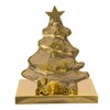 Hang your stocking by the chimney in style! This all-metal stocking hanger features an elegant Christmas tree design in a green, red, white and gold color scheme, complete with red and white ornaments and gold garland. Festively wrapped presents underneath the tree.