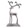 This Kurt Adler silver reindeer stocking hanger is a fun, festive way to hang your stocking and add to your holiday décor. Its simple design features a tall, slender, silver reindeer with large, dramatic antlers for a quirky flair.