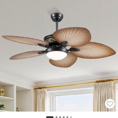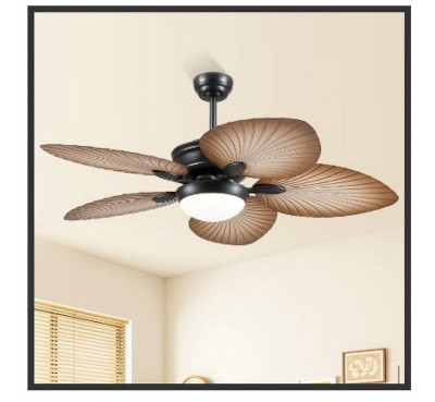 52" Smart Tropical Ceiling Fan with LED Light.This stylish 52-inch palm leaf fan delivers powerful, quiet airflow (<35dB) with 5 aerodynamic blades. Its reversible motor provides year-round comfort—cooling in summer and redistributing warmth in winter. The adjustable 3-color LED (3000K-6000K, 2000 lumens) offers ideal lighting for any mood. Smart features include remote/app control for 6 speeds and 1/2/4/8-hour timers. Easy to install and energy-efficient, it’s perfect for indoor/outdoor living spaces, combining tropical charm with modern convenience.