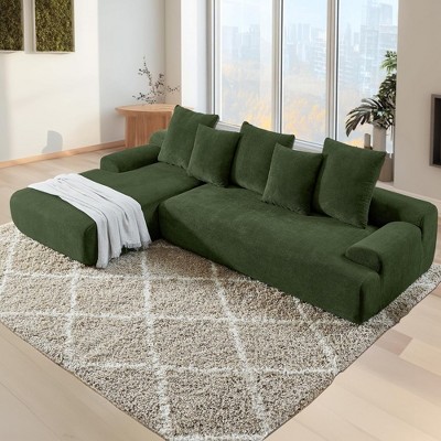 KWPZQEB 106.9" Modern Sectional Sofa, Corduroy Floor Modular Sofa with Chaise & 2 Pillows, L-Shape 4 Seater Compressed Couches Sofa for Living Room