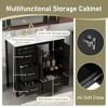 This 36-inch freestanding bathroom vanity is crafted from high-quality medium-density fiberboard with a durable paint finish, ensuring durability and easy cleaning. Delicate gold-tone metal handles add a touch of refinement, enhancing the aesthetic while providing a practical grip. The one-piece resin sink features a soft-touch finish, combining elegance with durability. It's resistant to cracking and easy to care for, protecting against stains and daily wear and tear.