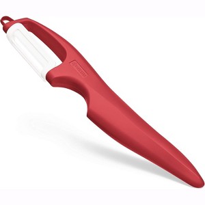 The Kyocera Advanced Ceramic Vertical Double Edge Vegetable Peeler makes peeling faster and easier. Its ultra-sharp dual ceramic blades cut in both directions for smooth, precise results. Lightweight, rustproof, and comfortable to hold, this peeler is ideal for fruits and vegetables. Made in Japan for lasting sharpness and performance.