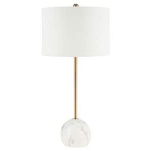 Illuminate your space with the exquisite Kyrene 32 inch table lamp, a perfect blend of style and elegance. Featuring a sleek steel frame, this lamp captivates with its gold finish that complements the sophistication of white marble. Made from polyresin, Kyrene offers a unique touch to any room, embodying both modern and classic elements. Its graceful design makes it an ideal addition to living rooms, bedrooms, or offices. Transform your ambiance with the gentle glow of Kyrene, and let your decor reflect your taste. Discover the beauty and simplicity of this stunning piece that effortlessly adds charm and character to your home.