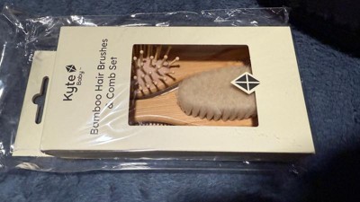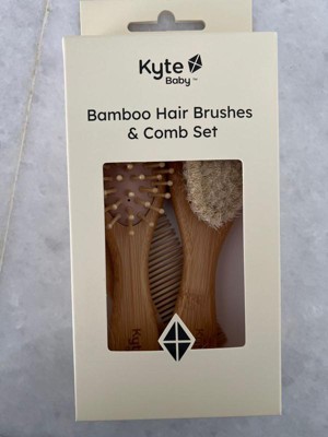 Kyte Baby Bamboo Hair Brush & Comb set is the best for your baby and for the environment. The 3-piece set contains a hairbrush with natural goat hair bristles, a hairbrush with wooden bristles, and a bamboo baby comb.