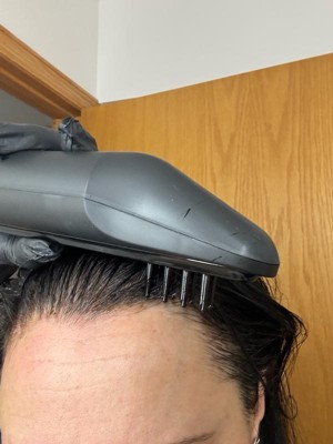 [This review was collected as part of a promotion.] This actually worked pretty well. I was able to dye my hair without my husbands help lol. It glides through your hair effortlessly (when you detangle your hair before) it comes out at a pretty slow pace which might be why i missed some grays but overall it worked really well. The clean up was a breeze too. I love the cleaning function which despenses water out of the bristles to get excess dye out of the machine.