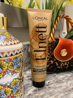 The hold trusted by stylists, L’Oréal Paris Elnett Slick Back Lightweight Styling Cream locks in slicked back hairstyles for all hair types. For clean, polished, and sleek slick back hair products looks, use our Elnett Slick Back Cream for an easy to re-style, brushable hold and shine with a no crunch touch. 24-hour flexible hold with no visible residue, stiffness, stickiness or crunch.