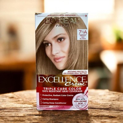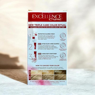 [This review was collected as part of a promotion.] Excellence Creme Permanent Triple Care Color in Light Brown is my favorite at home hair color. It is easy to apply and I get the same results every time. The shampoo and conditioner included leaves my hair soft and hydrated. It covers my gray and matches my natural color perfectly.
