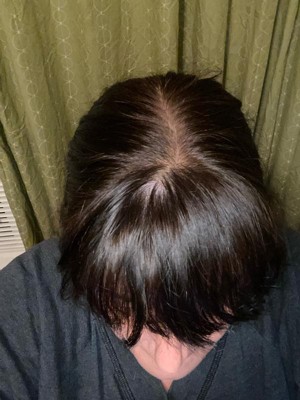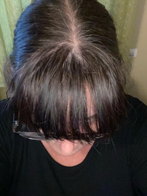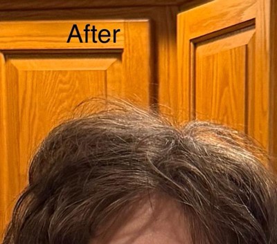 [This review was collected as part of a promotion.] I tried the L’Oréal Medium Brown permanent hair color, and overall I had mixed results. For context, I am nearly 100% gray, so coverage is very important to me. Application was easy and straightforward. One thing I really liked was the consistency of the color. The liquid was noticeably thicker than other brands I’ve used, which made it much easier to apply and control. It didn’t drip or run nearly as much, which I appreciated. I also liked that the kit included a shampoo for after coloring, and the conditioner was generous enough to last for several uses in the days that followed. That was a nice touch and felt more premium than some other box dyes. Because my grays are very stubborn, I did leave the color on longer than the instructions recommended. While the color did a decent job covering most of my gray, I noticed that many of the finer gray hairs around my hairline did not take the color well. I’ve included before and after photos to show this clearly. Ultimately, while this formula had some nice features, it didn’t deliver the level of gray coverage I need. I’ve been using another brand for years that performs better on my hair, and unfortunately this one just doesn’t stack up for me.