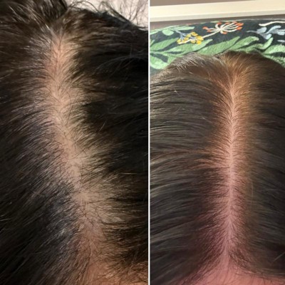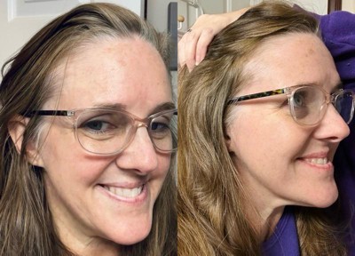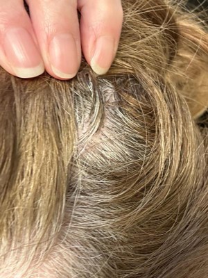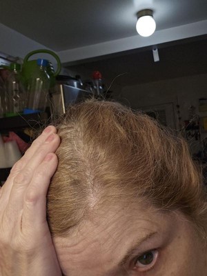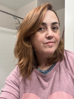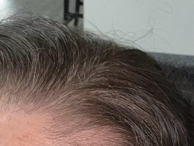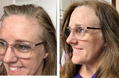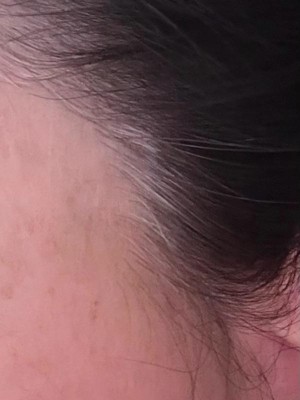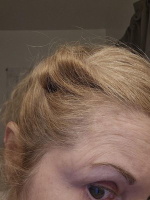 [This review was collected as part of a promotion.] I tried the L’Oréal Medium Brown permanent hair color, and overall I had mixed results. For context, I am nearly 100% gray, so coverage is very important to me. Application was easy and straightforward. One thing I really liked was the consistency of the color. The liquid was noticeably thicker than other brands I’ve used, which made it much easier to apply and control. It didn’t drip or run nearly as much, which I appreciated. I also liked that the kit included a shampoo for after coloring, and the conditioner was generous enough to last for several uses in the days that followed. That was a nice touch and felt more premium than some other box dyes. Because my grays are very stubborn, I did leave the color on longer than the instructions recommended. While the color did a decent job covering most of my gray, I noticed that many of the finer gray hairs around my hairline did not take the color well. I’ve included before and after photos to show this clearly. Ultimately, while this formula had some nice features, it didn’t deliver the level of gray coverage I need. I’ve been using another brand for years that performs better on my hair, and unfortunately this one just doesn’t stack up for me.