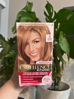[This review was collected as part of a promotion.] Excellence Creme Permanent Triple Care Color in Light Brown is my favorite at home hair color. It is easy to apply and I get the same results every time. The shampoo and conditioner included leaves my hair soft and hydrated. It covers my gray and matches my natural color perfectly.