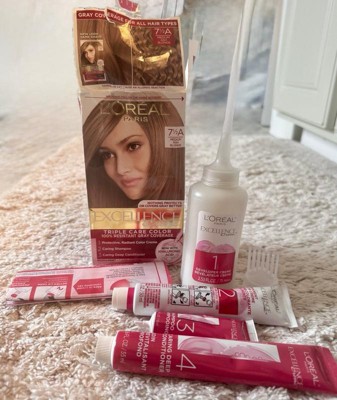 [This review was collected as part of a promotion.] I recently tried the L'Oreal Excellence Creme Triple Care Hair Color in 6A Light Ash Brown, and I am absolutely thrilled with the results! As someone who's colored their hair at home many times, I'm always looking for a product that's easy to use and delivers on its promises. This one certainly did, leaving my hair feeling incredibly soft and looking vibrant with a beautiful, natural-looking ash tone. What really impressed me was the triple care system. The pre-color treatment felt like a salon-grade step, protecting my hair before the color even went on. Then, the actual color application was smooth and didn't have that overwhelming chemical smell you sometimes get. Finally, the post-color conditioner was truly exceptional, making my hair feel genuinely nourished and silky. If you're looking for an at-home hair color that gives you fantastic coverage, a gorgeous shade, and seriously healthy-feeling hair, I honestly can't recommend L'Oreal Excellence Creme enough. It's a real winner in my book, and I'll definitely be reaching for this again!