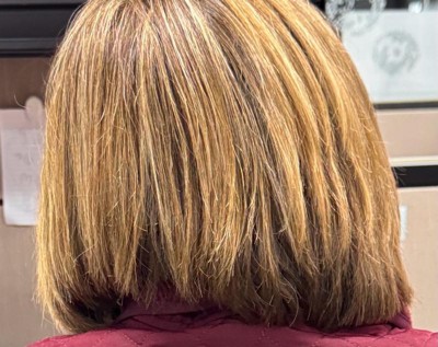 [This review was collected as part of a promotion.] I forgot to take a before but I can tell you it was time to add some color besides grey to my hair. The scent was nice. It wasn't too strong. It colored up the grey perfectly. The shampoo and conditioner included left my hair soft and shiny. I will definitely be on the list of brands to get when I have to color my hair at home!