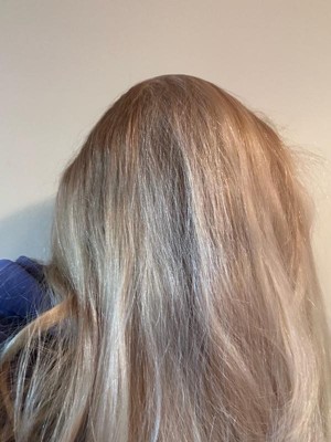 [This review was collected as part of a promotion.] I have long hair and a lot of of it so I did not think one box would be enough but I was wrong. I focused on my roots first because of the grades and then I did the front and was surprised I had enough to do the entire back as well. That’s important because it makes it worth the money. There was no staining because when I did my hairline it was a slightly bluish tint and it wiped away easily. I love the tone because it is a cool tone and I have way too much warmth in my hair right now. I left this on for 30 minutes and I like the way it turned out because all of my grades are covered. My hair feels really soft and silky and it smells incredible. I have plenty of the deep conditioning treatment left over to use multiple times like it says. I’m pretty impressed with the Excellence cream permanent triple protection hair color and I think 7.5A medium ash blonde is exactly like it says because I could definitely see the ash tint once I applied the color. I also love that I would only need to get one box of this compared to two boxes of any other color.