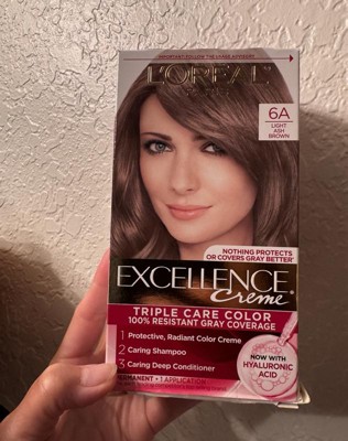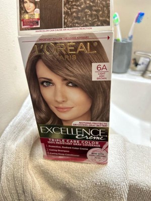 [This review was collected as part of a promotion.] I’ve personally used L’Oréal Excellence Crème Triple Care Color in 6A Light Ash Brown and had a great experience with it. The color came out beautifully natural with cool ash tones that helped neutralize warmth and brassiness, leaving my hair looking rich and well-balanced. It provided excellent gray coverage and looked even from root to tip. I really appreciated the Triple Care formula, my hair felt soft, conditioned, and healthy during and after coloring, not dry or brittle like with some box dyes. The cream was easy to apply, didn’t drip, and had a pleasant scent compared to other permanent colors. After rinsing, my hair had noticeable shine and the color held up well over time. It’s a reliable at-home color that delivers salon-like results while keeping hair feeling nourished and strong.