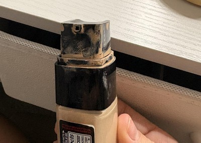 Bottle is covered in foundation. The foundation is all over the cap & bottle. Shoppers need training on how not to pick items that are obviously used, dirty & gross.