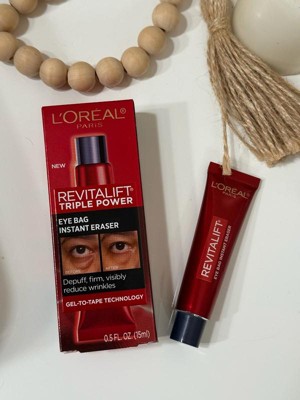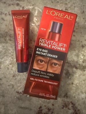 - Say goodbye to tired eyes! The L'Oreal Paris Revitalift Triple Power Gel to Tape Eye Bag Instant Eraser instantly erases eye bags, wrinkles, and crow’s feet for up to 8 hours.