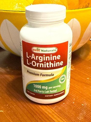 Best Naturals L-Arginine L-Ornithine - 1000mg per Serving - 120 Tablets - Non-GMO & Gluten Free