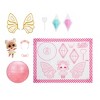 Explore the magic of fairies like never before with the all-new L.O.L. Surprise Fairies!™ Tots, including customizable fairy crystal wings and fashionable accessories! This hands-on, creative experience is the perfect magical collectible for kids, providing a simple introduction to imaginative crafts. Discover the enchanted magic of your Fairy Tot by opening the ball to reveal your surprise doll, fairy wings, fairy crystal kit, and accessories! To customize your fairy wings, lay the wings flat on the included playmat and spread two colors of fairy crystal mix into the open sections of the wings to create your desired pattern. Ready for the magic to happen? Use the adorable heart pipette to drop water over the fairy dust to set your beautiful design. When you’re done, wait two minutes for the crystals to dry before moving on to the other side. When both wings are fully set, your fairy is ready for you to clip on her sparkling new wings! Don’t forget to unwrap the other cute surprises to accessorize your tot with her adorable dress and matching headpiece! Each Tots doll has sweet features, a unique hairstyle, and her own precious outfit. When playtime is over, the ball doubles as a display stand to show off your Fairy Tot and her beautiful wings! Discover what’s inside and collect all 8 L.O.L. Surprise Fairies Tots™ collectible dolls with customizable wings. Note: Adult supervision is advised.