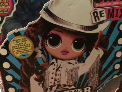 So, we got the new remix OMG dolls when they first came out. She’s cute and her clothes are bright and shiny. She wasn’t a favorite of my girls, 4 and 7, but she’s really grown on them. They really like her now. They really like switching her clothes. She has two cool outfits, of course, with her glasses, earrings, and magazine (no necklace, but she does have a guitar and spurs on her boots). The magazine has her part of the lyrics to their new song. It would have been awesome if she also came with her little sister, Line Dancer, who is also a cutie. So the big difference with the Remix series, apart from having two outfits, is the music. There is a faux record that you are supposed to play on the box in which the OMG comes. There is actually a small music box with batteries hidden inside the box and when you put the record on the box and spin it, the music plays...for about 20-30 seconds, I think. The music is loud and kind of tinny. But, my kids do not care. They love it.