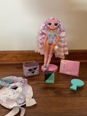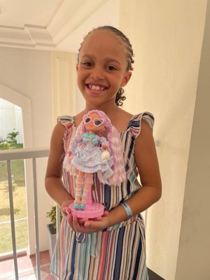 [This review was collected as part of a promotion.] My daughter loves all things LOL so she was super excited to get her first OMG doll on our vacation! My daughter liked that you can bend her arms and hands. She also loved her outfit and came up with a backstory for her! That she was in a dance competition and won and the prizes were the purse and earrings. I foresee lots of imaginative play with her! She likes that there is a stand for her to be displayed when not playing. Finally, her hair is super soft and easy to put in different styles.