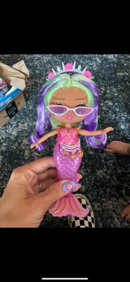 [This review was collected as part of a promotion.] Super cute decent sized doll that comes with a cute little crown and sunglasses! Her fin changes color in cold water and turns back once back to room temperature. Easily able to play in water or not. The packaging is top notch, took forever to break her free so the little could play with her. She’s very happy with her new toy, couldn’t be more pleased!