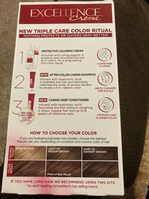 - Your Excellence Just Got Better: New Triple Care Color Routine protects hair before, during, and after coloring for up to 8 weeks with a combination of ceramide, pro-keratine, and glycerin for rich color and revitalized hair. New look same great shades