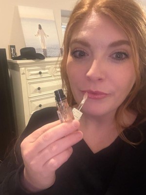 Using the cushiony pillow applicator, apply starting in the center of your upper lip. Work from the center to outer edges of your lips and then glide across the entire bottom lip. Wait for at least 10 minutes to assess your unique color and glassy, plumper-looking lips!