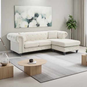 - This Chaise Sectional is Covered in Soft Velvety MicroSuede - Rolled and Tufted On Top and Back