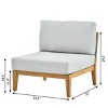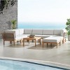 Create seamless outdoor relaxation with this expansive 7piece modular sofa group. Engineered for effortless reconfiguration, the deep cushion seats feature highresilience foam cores wrapped in performance knit fabric for optimal airflow. Frame joints utilize rustproof alloy connectors securing kilndried hardwood bases with woven lattice back panels that add visual texture. The coordinating center table showcases crossbraced legs beneath a reinforced slatted woodlook top resistant to spills and UV exposure. All components feature toolfree assembly via integrated locking mechanisms.