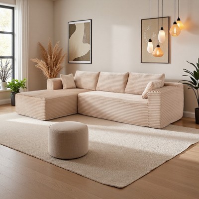L-Shaped Plush Corduroy Modular Deep-Seat Sectional Sofa with Chaise
