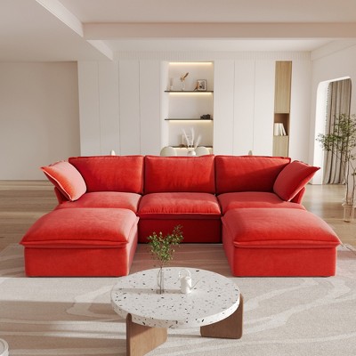 - Mid-century design living room sectional covered in soft velvety microsuede.