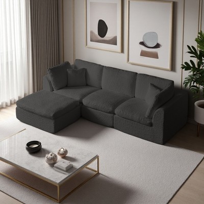 - Cloud-Like Comfort ¨C Sink into high-elastic foam cushions designed for all-day relaxation. Includes 3 oversized velvet pillows for added lumbar support and style.