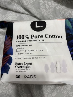 L. Organic Cotton Top Layer Ultra Thin Pads - Overnight Absorbency - 96ct