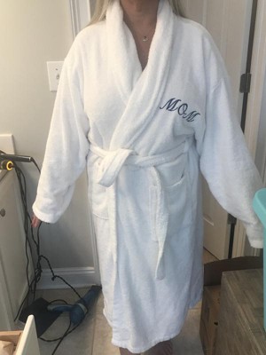 L/XL Mom Bathrobe White - Linum Home Textiles: 100% Cotton Terry, Long Sleeve, V Neck, Front Tie, Machine Washable