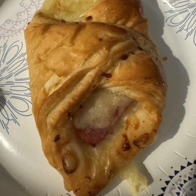 - Layers of super flaky croissant dough wrapped around smoked ham and melted Swiss cheese