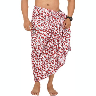 LA LEELA Men's Sarong Bath Trunk Wraps Pareo One Size Allover Sun Red