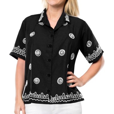 LA LEELA Women's Casual Hawaiian Short Sleeve Blouse Shirt Solid Blouses Button Down Dress Tops Tee Shirts Tank Top Women S Plus-Size Denim Floral