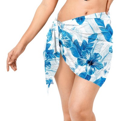 LA LEELA Women's Short Beachwear Bathing Suit Holiday Pareo Swimsuit Swimwear Sarong Wrap Cover up Wraps One Size Blue Floral