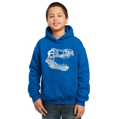 LA Pop Art Boy's Word Art Hooded Sweatshirt - TYRANNOSAURUS REX Royal X Large