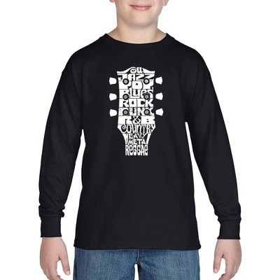 LA Pop Art Boy's Word Art Long Sleeve - Heavy Metal Genres Black Medium