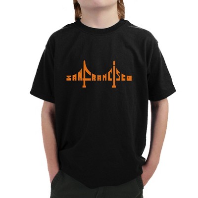 LA Pop Art Boy's Word Art Long Sleeve - San Francisco Bridge Black Small