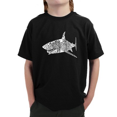 LA Pop Art Boy's Word Art Long Sleeve - SPECIES OF SHARK Black X Large