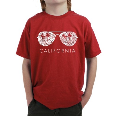 LA Pop Art Boy's Word Art T-shirt - California Shades Maroon X Small