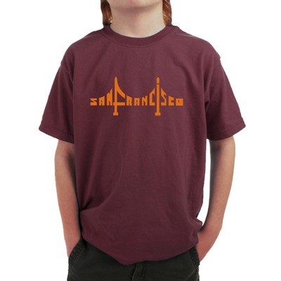LA Pop Art Boy's Word Art T-shirt - LOS ANGELES NEIGHBORHOODS Maroon X Small