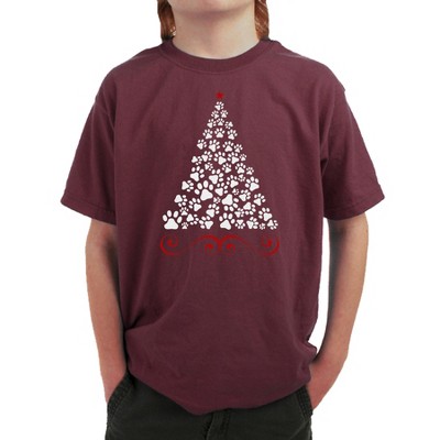 LA Pop Art Dog Heart - Boy's Word Art T-Shirt Maroon Medium