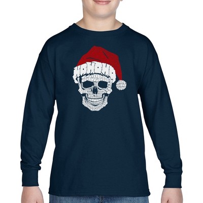LA Pop Art Feliz Navidad Santa Claus - Boy's Word Art Long Sleeve T-Shirt Navy X Large