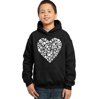 LA Pop Art Girl's Word Art Hooded Sweatshirt - Paw Prints Heart Black Small