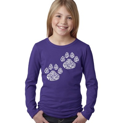 LA Pop Art Girl's Word Art Long Sleeve - Dogs and Cats Purple Small