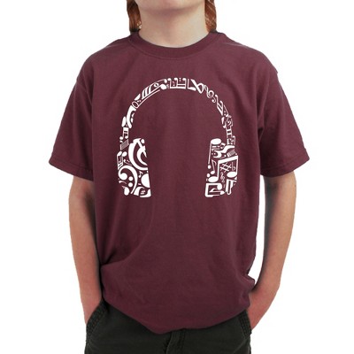 LA Pop Art Girl's Word Art T-shirt - Music Note Headphones Maroon X Large