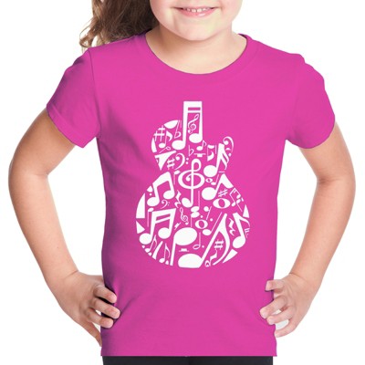 LA Pop Art Girl's Word Art T-shirt - Music Notes Skull Turquoise Medium